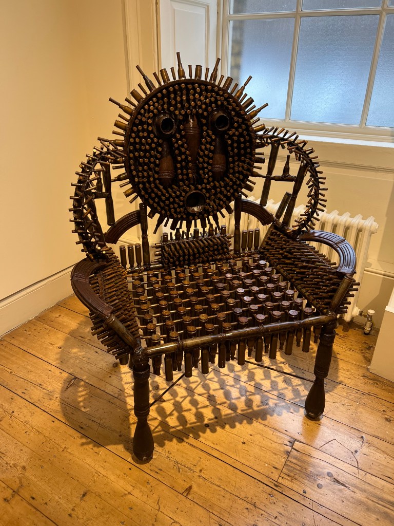 Goncalo Mabunda’s work examines the civil war in Mozambique. By reusing the very weapons that caused devastation, Mabunda intends to tell a different narrative, politically charged, but charged to tell the power of art along with the resilience and creativity that emerges from Africa.