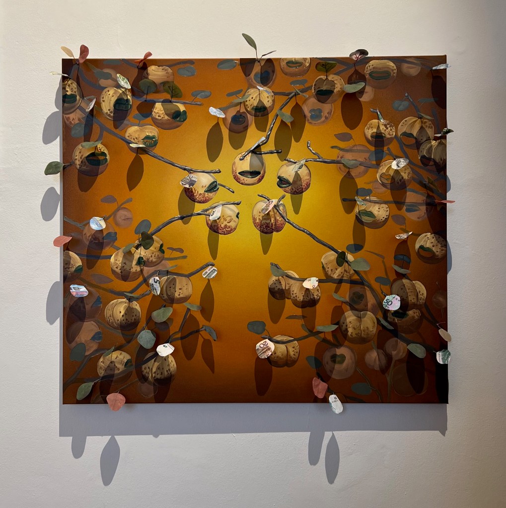 Miguel Angel Payano Jr.’s work was intriguing because it utilised his time in China with the incorporation of peaches. A symbol of longevity and immortality, the peaches are combined with money which is synonymous with security and wealth. For me, it begs the question, do we achieve longevity and immortality through money? I know the artist didn’t intend for such discourse, but the combination of the two evoked this question within me.