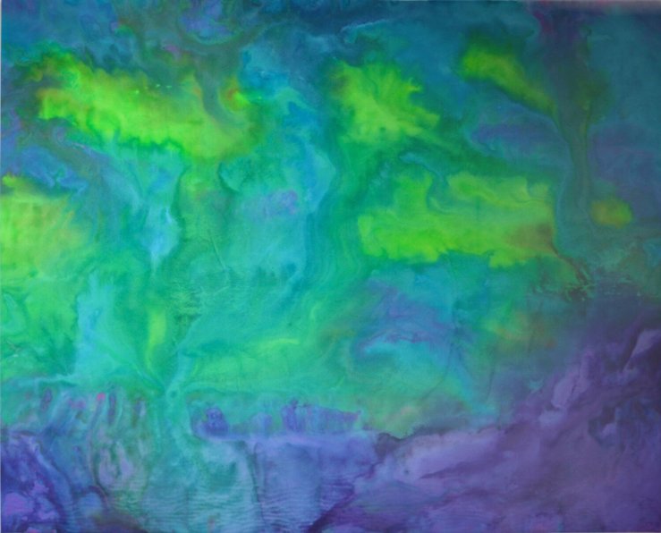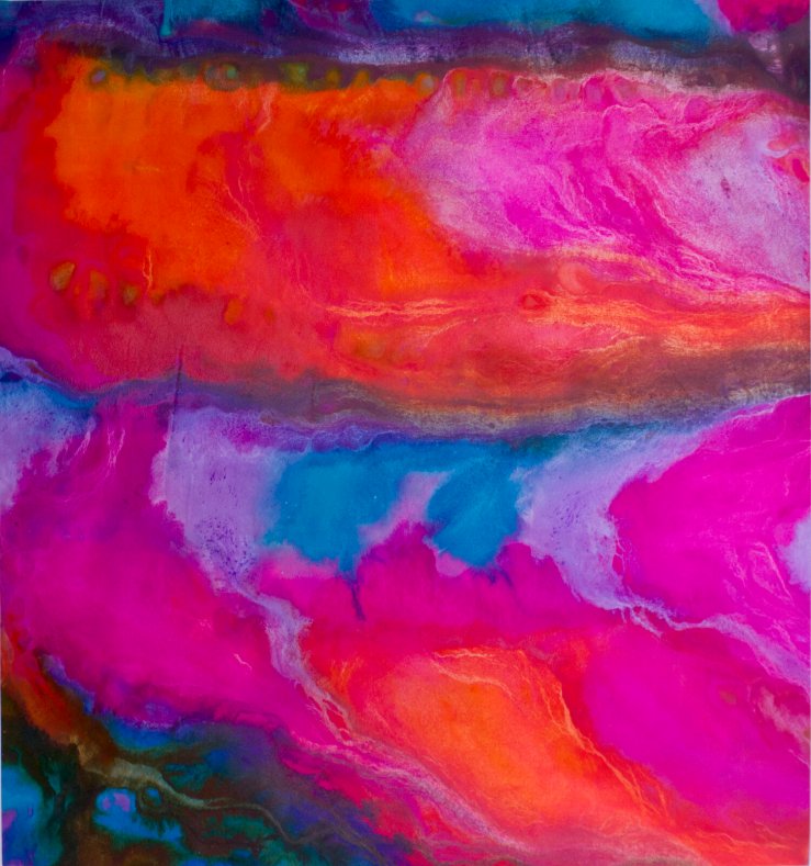 In addition to this, Rebecca stated that the painting has an underlayer of pink and yellow, but because of the other colours and their viscosities, you can barely see the two. But if you focus on certain regions, you can see the pink.
