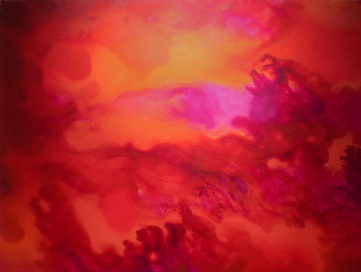 When it comes to the colours used, Rebecca stated her inspiration came from the sunsets she saw in India. “When I was in India, I saw the sunsets, and they were magnificent; they were beautiful. So, when I was in the studio, I wanted to use them for this painting”. The colours in this painting work so well together, and they coalesce so effortlessly with each other, and it’s because of this I feel that sense of peace.