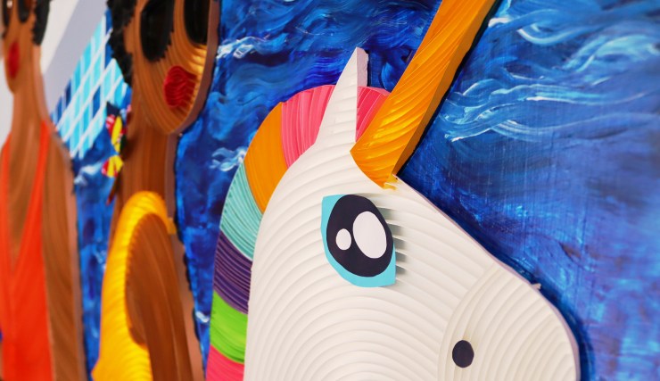 Another interesting feature that caught my attention was the unicorn, I asked Ayobola, why the unicorn? Ayobola said the unicorn was another easter egg within the work, and its presence pays homage to a cup she had as a child: “There was this cup, it was this ridiculous, gaudy cup, and it had a glitter case. If you turned it upside down, all the glitter would come down, and unicorns would appear. As a child, I was obsessed with that cup. It was like a symbol of the good things that I had; the cup was like a beacon of hope, like optimism bordering on foolishness”.